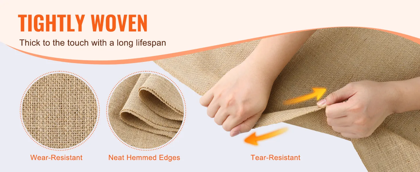 Rustic Charm: Burlap material's natural texture brings a cozy, country vibe to any event or home space. It adds a warm, vintage feel that will impress your guests.