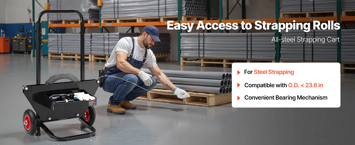 Convenient Tool Storage: Keep your strapping tools close by with a built-in toolbox. Greatly store your tensioners, cutters, and seals for easy access—no more time wasted searching