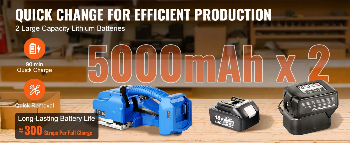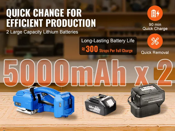 Grote accu voor efficiënte productie: dit elektrische omsnoeringsapparaat wordt aangedreven door twee lithiumbatterijen van 5000 mAh en maakt met een volledige lading tot 300 omsnoeringswerkzaamheden mogelijk. Hij laadt snel op in slechts 90 minuten en heeft een verwijderbaar ontwerp, zodat u onderweg de batterijen kunt verwisselen. Minder stilstand betekent meer productiviteit en minder inspanning voor u.