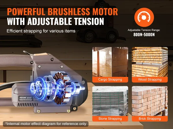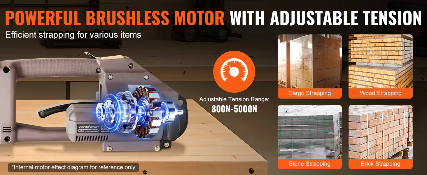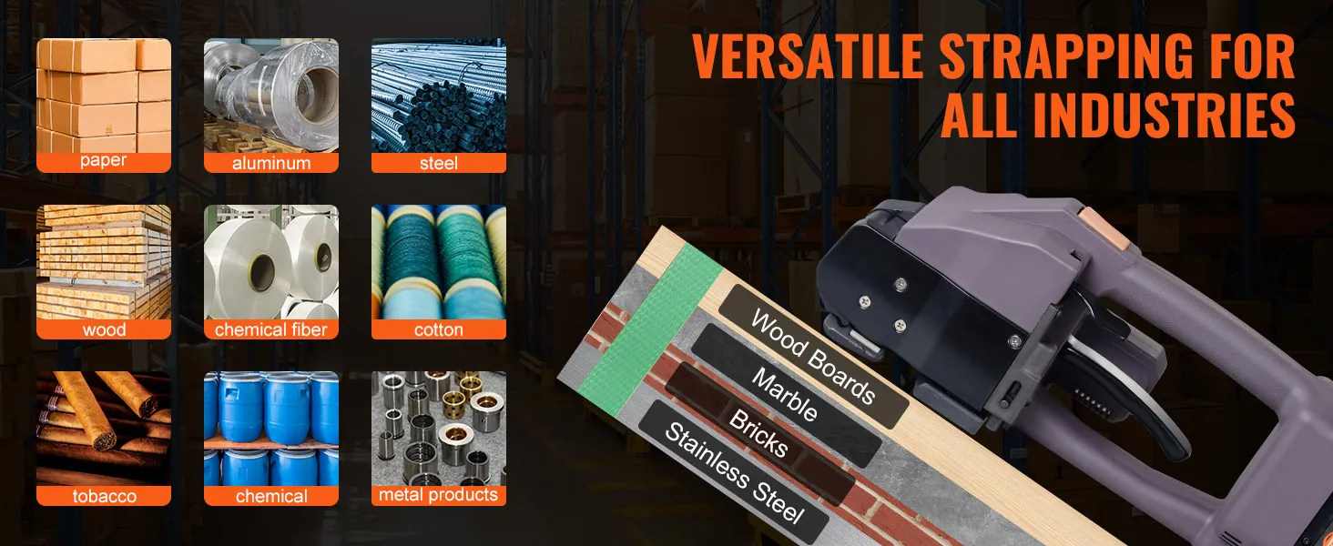 Dit elektrische omsnoeringsapparaat met zijn krachtige borstelloze motor biedt u soepele en sterke prestaties. Het is geschikt voor alle soorten verpakkingswerk, van papier en aluminium tot staal en hout.