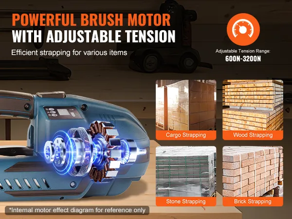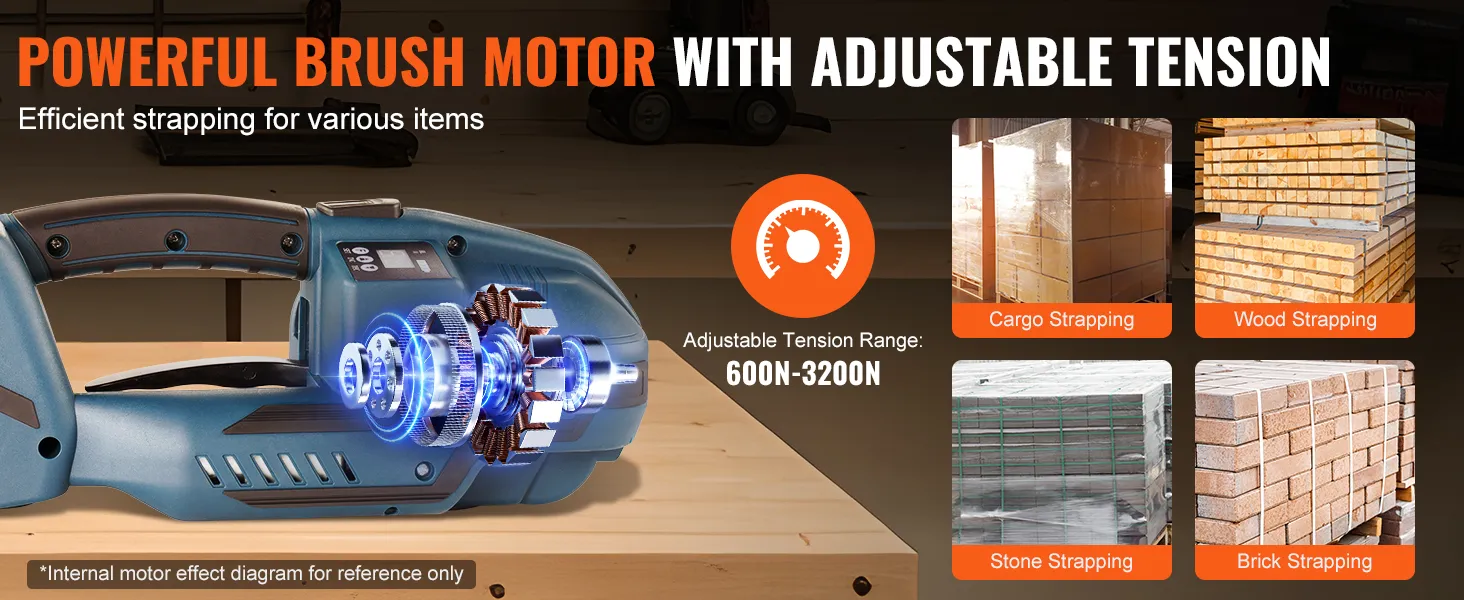 With a powerful brushless motor, this electric strapping tool gives you steady and strong power. Tightening the straps is a breeze with just one button; no muscle is needed. It's great for all sorts of packaging jobs, from paper and aluminum to steel and wood.