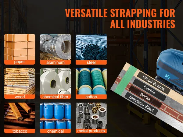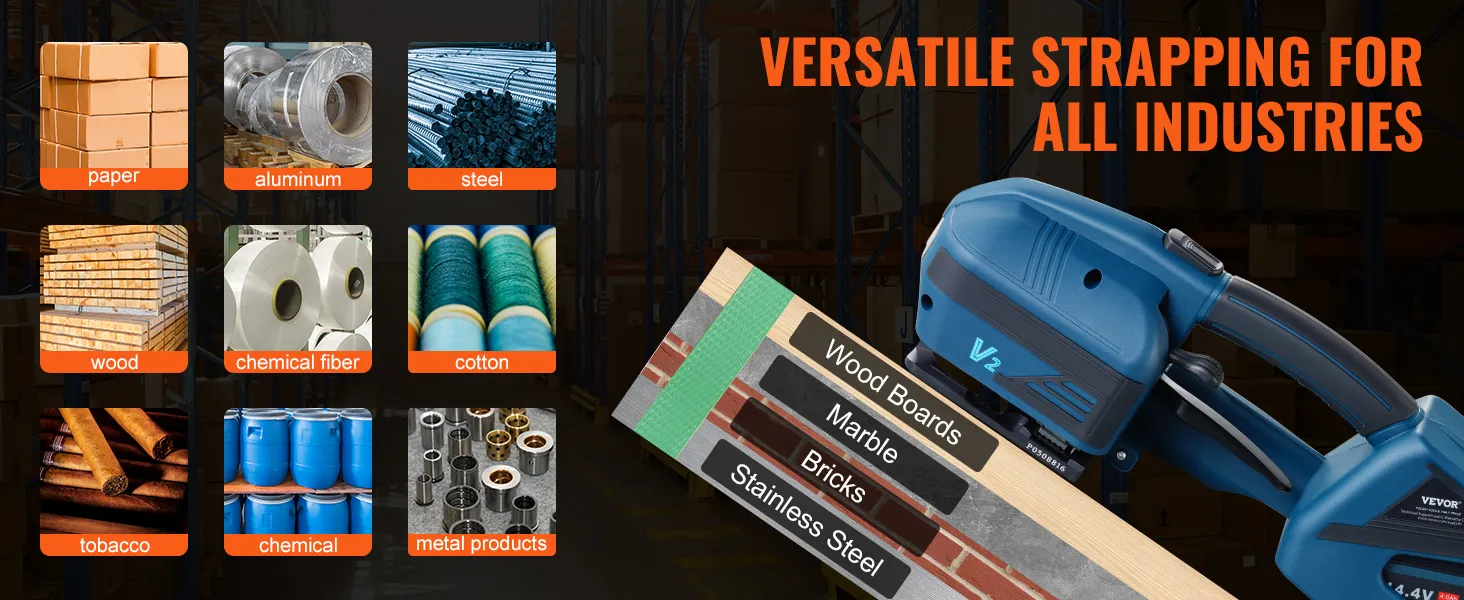 Perfect for Various Industries: Whether you're in paper, aluminum, steel, wood, chemical fiber, cotton, tobacco, chemical, or metal products, our strapping tool is here to help. It handles everything from wood boards and marble to bricks and steel, boosting your efficiency and product quality across the board.