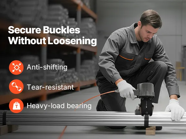 Heavy-duty omsnoeringsapparaat: Deze pneumatische omsnoeringsmachine levert een trekkracht van 8500 N, waardoor u gemakkelijk pallets, stenen, staal en coils kunt vastzetten. Het bespaart moeite, tijd en verhoogt de efficiëntie bij veeleisende taken.