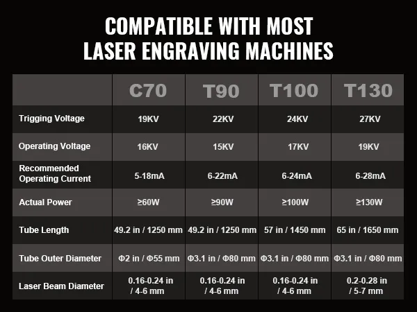 Deze CO2-lasergraveermachinebuis is ideaal voor diverse graveertaken, waaronder metalen borden, houtbewerking en het markeren van elektronische componenten, en voldoet aan de behoeften van fijn vakmanschap en aangepaste ontwerpen in alle industrieën.