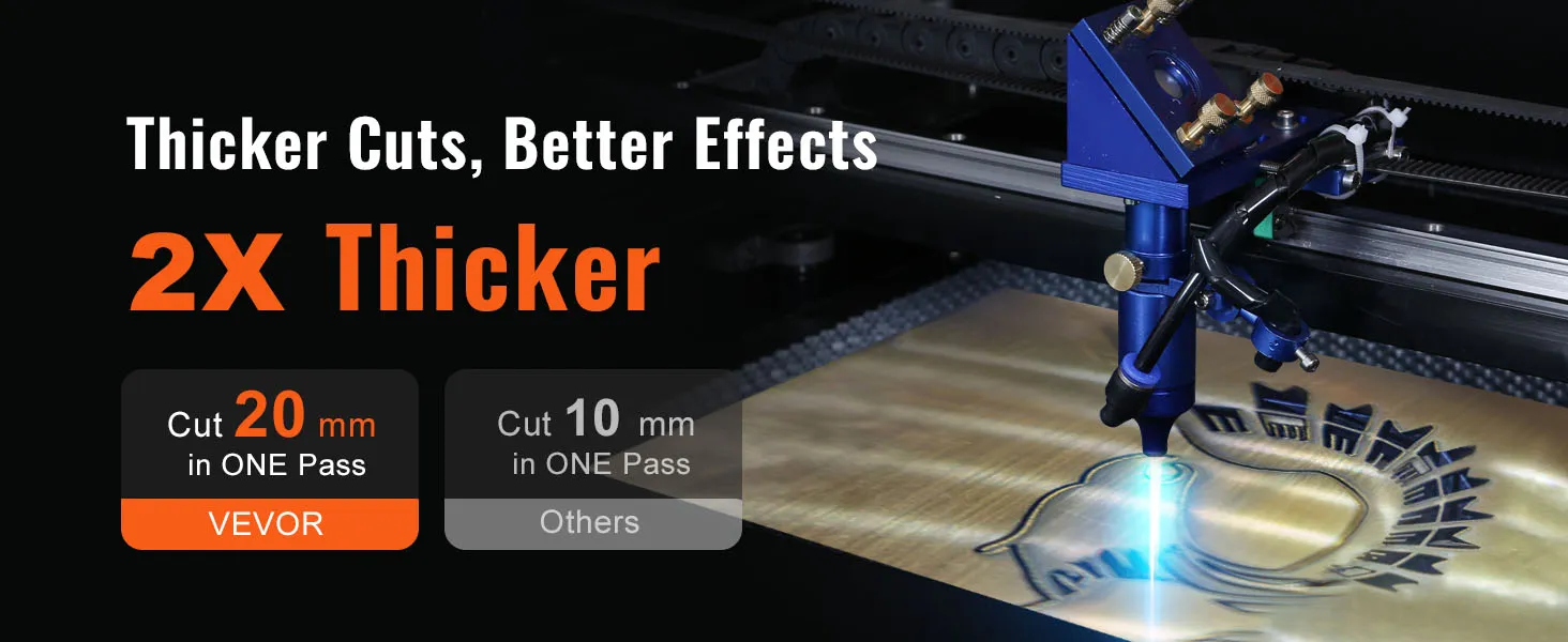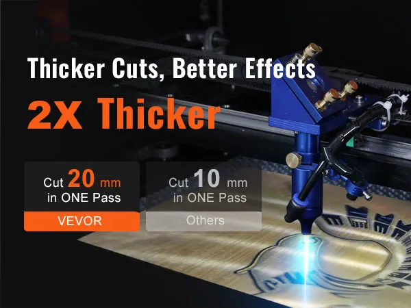 Q: How thick of an object can this laser engraver cut through? A: It can cut materials up to 20 mm thick.
