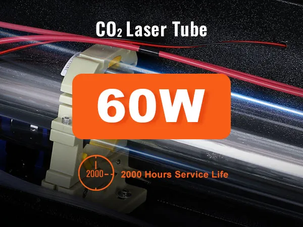 60W CO₂ Laser Engraver: Start your laser engraving journey today with our 60W CO₂ laser engraver and cutter, and bring your ideas to life with extreme speed and precision. It can cut materials up to 0.31 in/8 mm thick in one pass, and engrave on a wide range of materials including on wood, acrylic, cardboard, glass, leather, stone, and other 1000+ materials at speeds of up to 19.7 ips (500 mm/s). What will you create first? (Laser Class Ⅱ, High-Performance DC Power 60W)