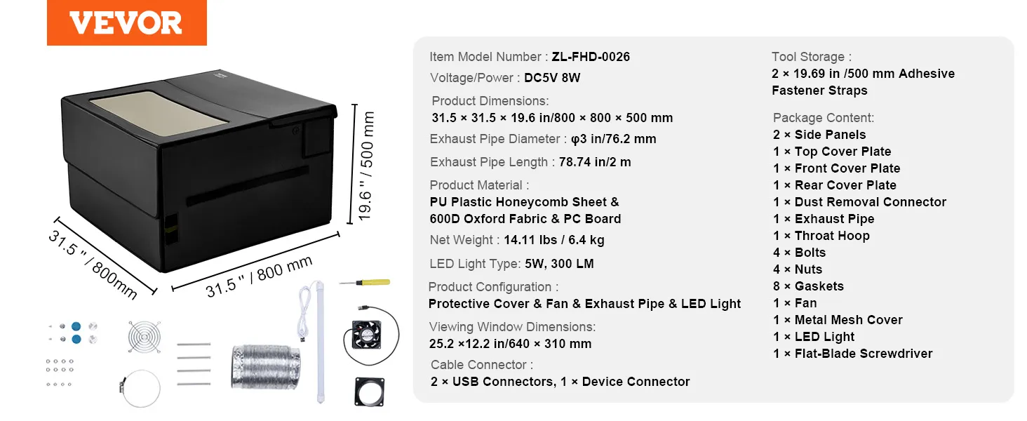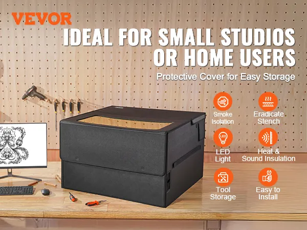 Groot formaat, hoge compatibiliteit: voldoende binnenruimte: 31,5 x 31,5 x 19,6 inch / 800 x 800 x 500 mm, compatibel met de meeste lasergraveerders op de markt. Hogere en bredere afmetingen, op maat gemaakt voor zowel hobbyisten als professionals, zorgen voor een goede pasvorm en een soepele werking.