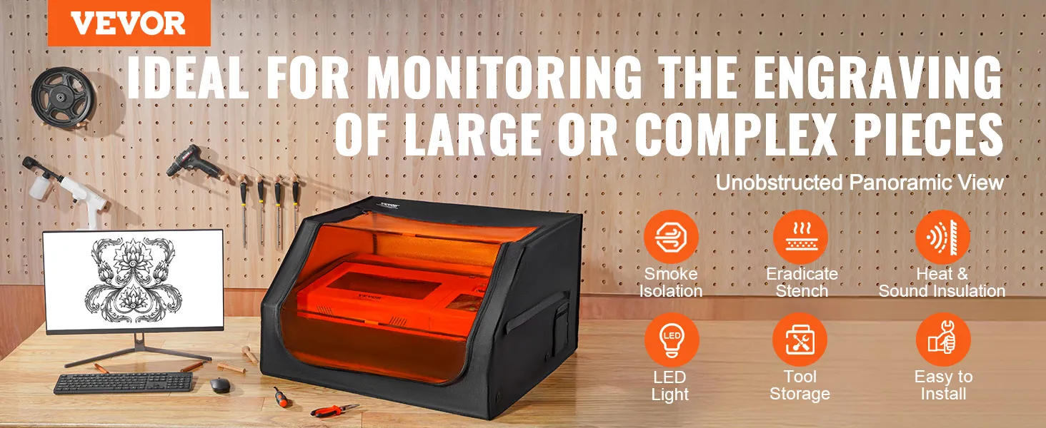 VEVOR lasergraveerbehuizing met groot kijkvenster en standaard