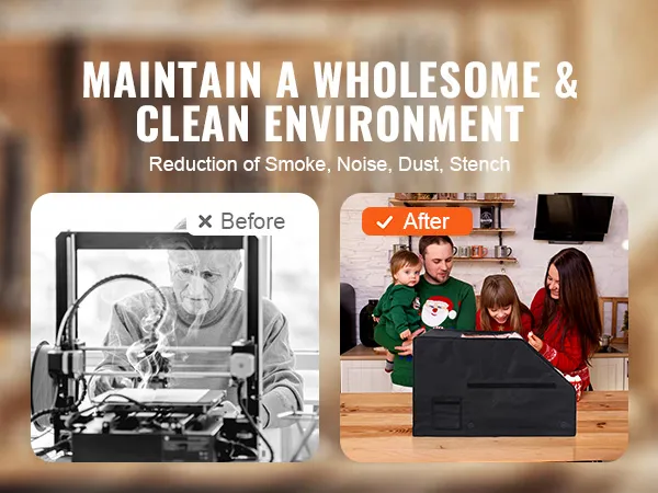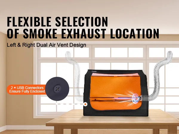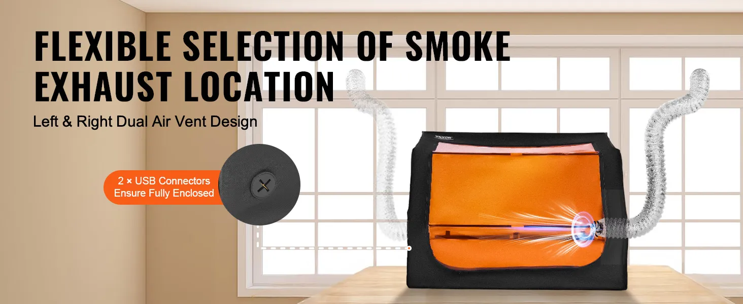 Isoleer rook en stank: Het volledig gesloten ontwerp zorgt ervoor dat er geen rook ontsnapt. Een snelle ventilator van 4000 tpm elimineert op efficiënte wijze rook, lawaai, stof en stank, waardoor de luchtkwaliteit binnenshuis aanzienlijk wordt verbeterd. Uitlaatopeningen aan beide zijden zorgen voor een flexibele plaatsing. Bied u een aangenamere graveerervaring.