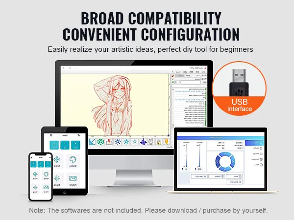 Sluit onze lasergraveerder naadloos aan op uw computer via de USB-interface. Het ondersteunt populaire lasergraveersoftware zoals LightBurn en LaserGRBL (compatibel met iOS-, Windows- of Linux-systemen).