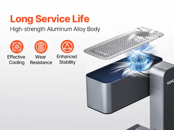 Deze draagbare lasergraveerder heeft een behuizing van een zeer sterke aluminiumlegering die zorgt voor een uitstekende warmteafvoer, slijtvastheid en stabiliteit. Geavanceerde oxidatiebehandeling verhoogt de corrosie- en slijtvastheid.