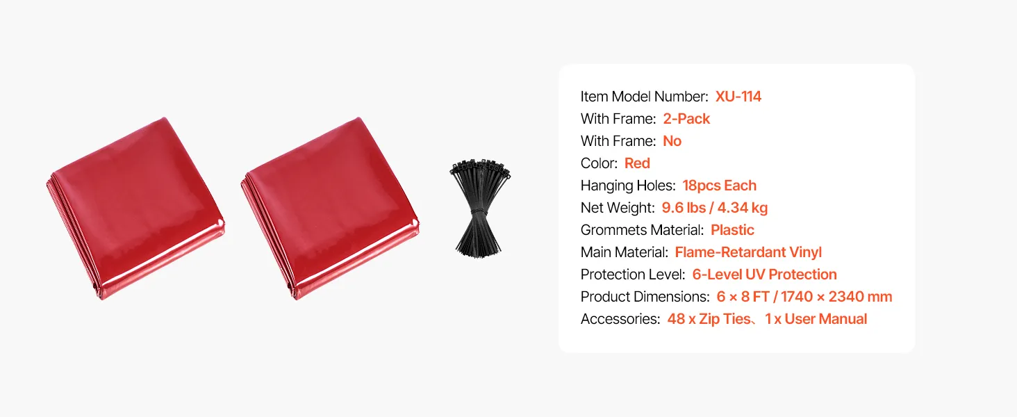 Ruime beschermingszone: Het VEVOR vlamvertragende lasgordijn (1740 x 2340 mm) biedt uitgebreide bescherming voor uw werkgebied en lasprojecten. Het beschermt het gebied en vermindert de effecten van vonken en spatten, wat zorgt voor een veiligere en efficiëntere werkomgeving.