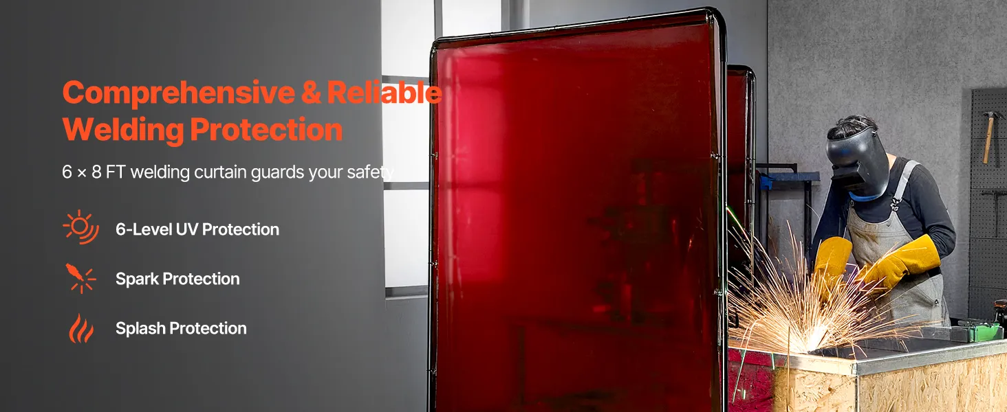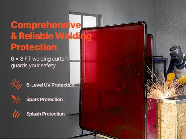 Bescherm uzelf en uw werkplek met het VEVOR lasgordijn. Het tweedelige VEVOR veiligheidslasgordijn (1740 x 2340 mm) biedt 6 niveaus uv-bescherming en is gemaakt van vlamvertragend vinyl. Het blokkeert effectief vonken en spatten, voor een veiligere en efficiëntere werkplek.