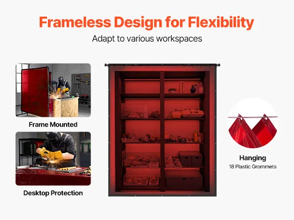 Het hangende lasgordijn is gemaakt van duurzaam, vlamvertragend vinyl en garandeert stabiliteit en consistente bescherming tegen hitte, vonken en schittering tijdens laswerkzaamheden met hoge temperaturen.