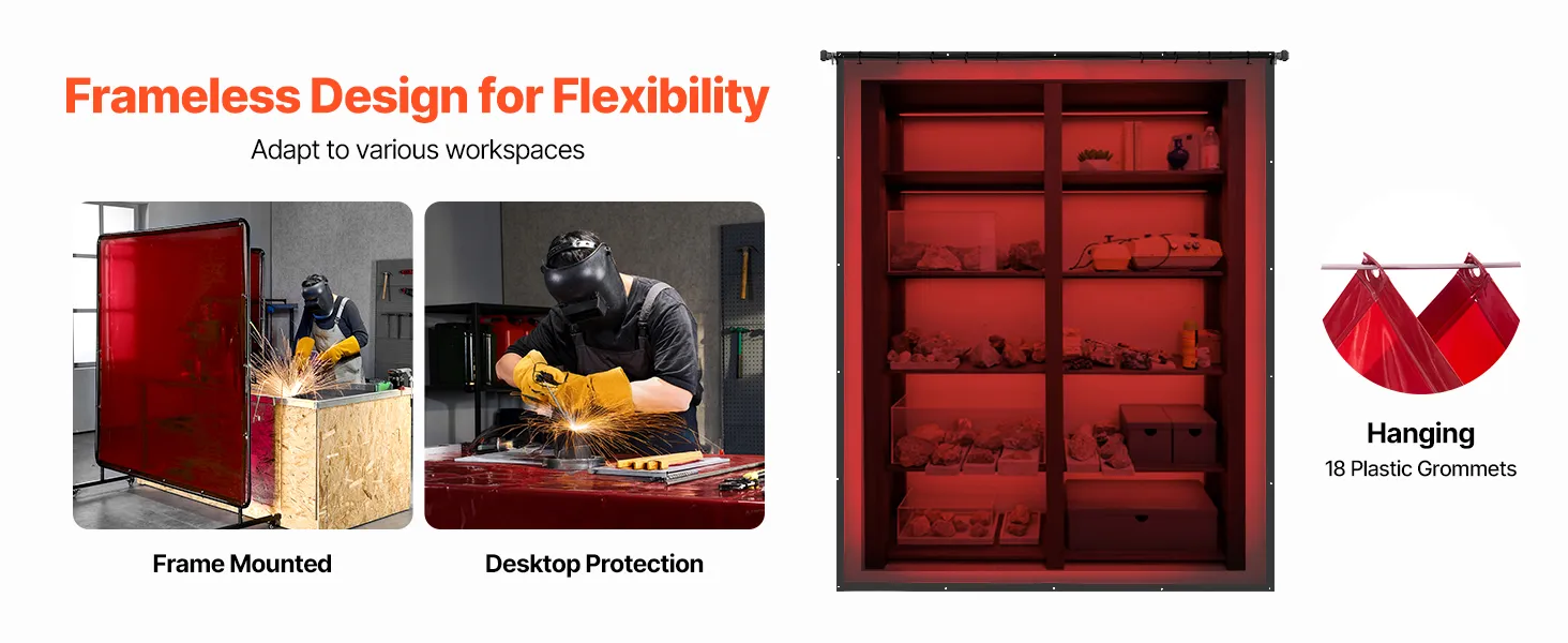 Eersteklas vlamvertragend: dit lasgordijn, gemaakt van hoogwaardig, vlamvertragend vinyl, biedt een uitstekende vlamvertragende en hoge temperatuurbestendigheid en biedt betrouwbare en langdurige bescherming bij diverse veeleisende lastoepassingen.