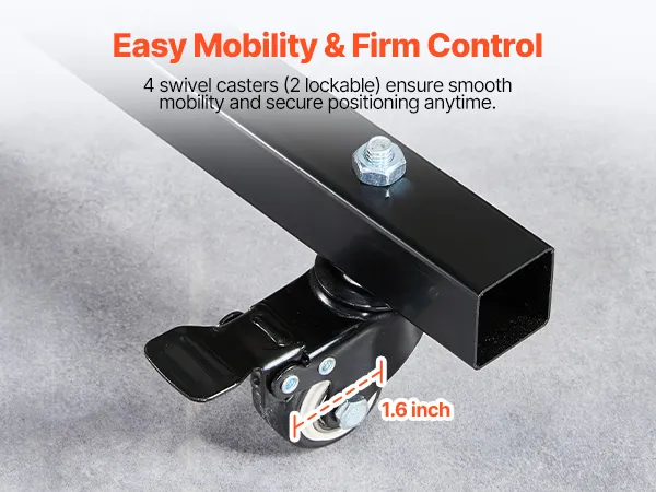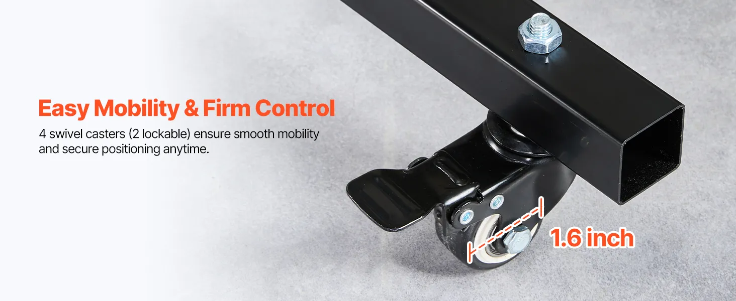Gemakkelijk te verplaatsen: De lashelm is uitgerust met 4 soepele wielen (waarvan 2 met rem), waardoor hij gemakkelijk te verplaatsen is naar verschillende werkplekken. Hij biedt optimale en uitgebreide bescherming in werkplaatsen, autoreparatiewerkplaatsen, scheepswerven, industriële installaties en meer.