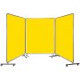 VEVOR lasgordijn, gele panelen, opvouwbaar met zwenkwielen voor mobiliteit en veiligheid.