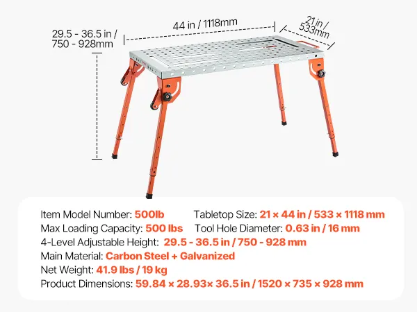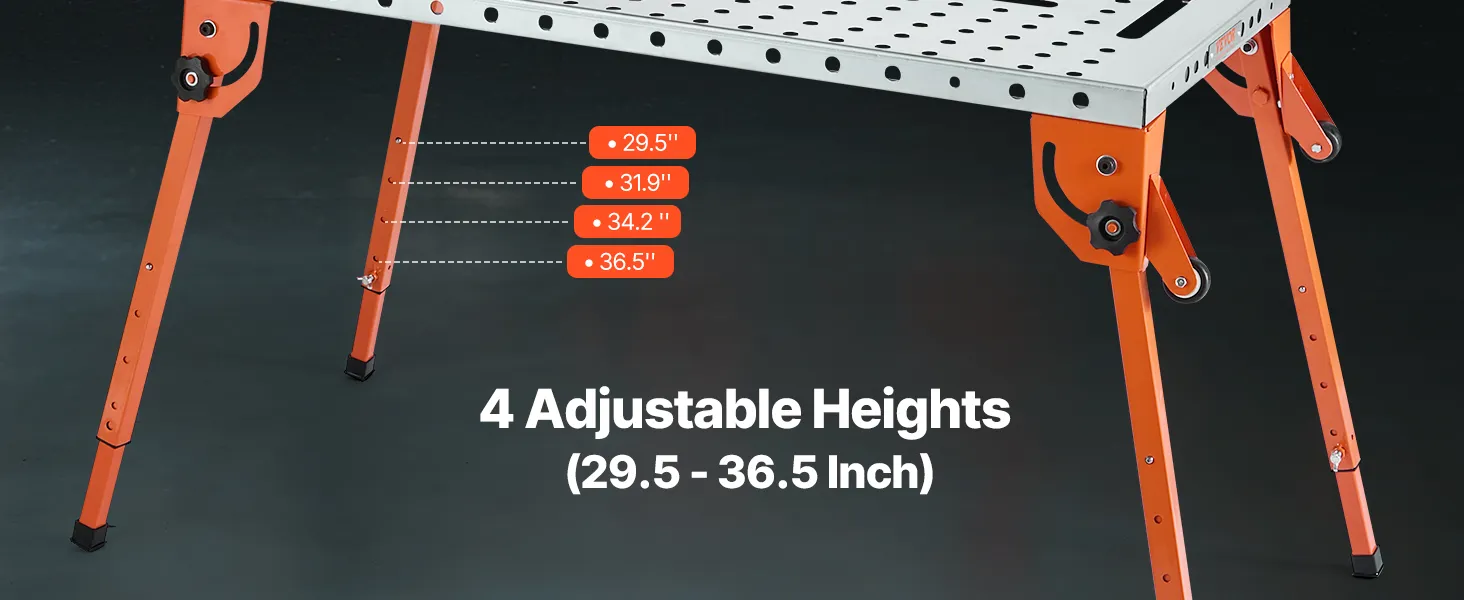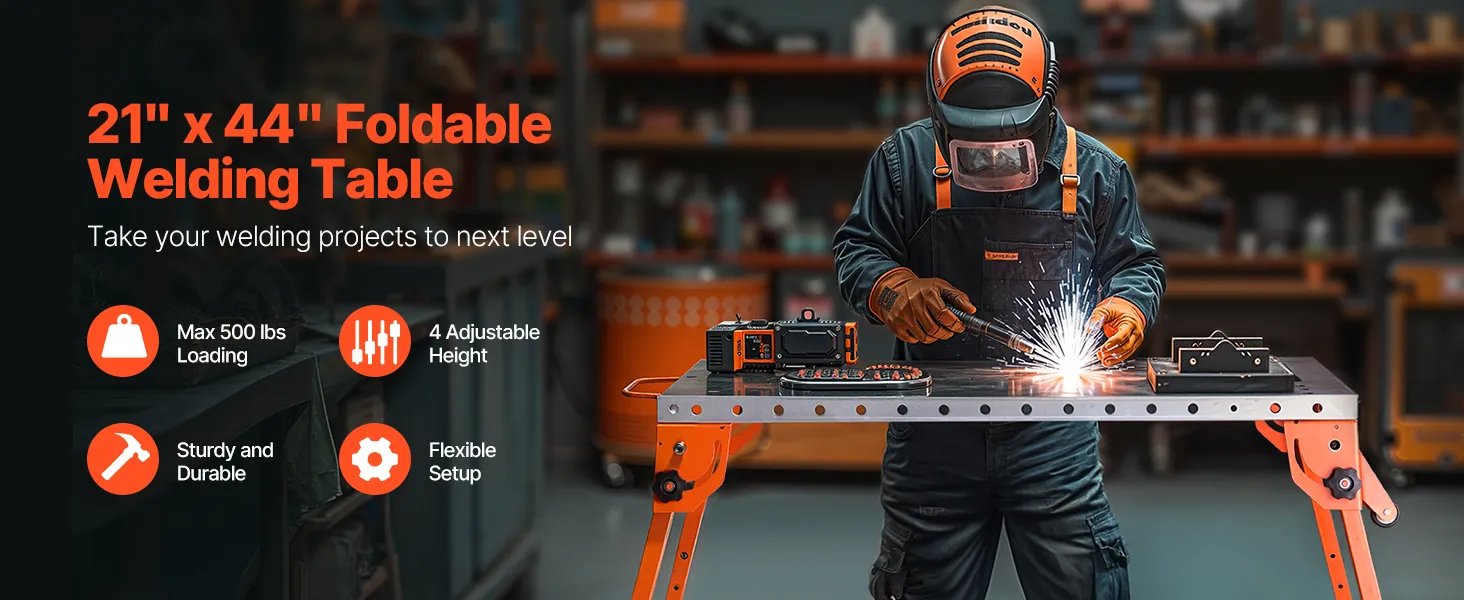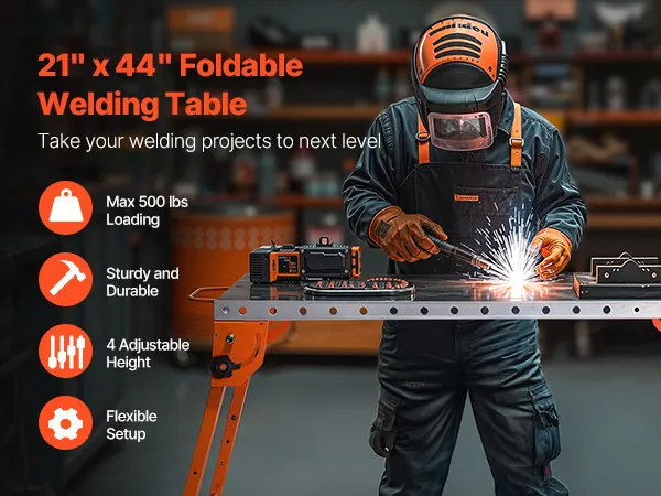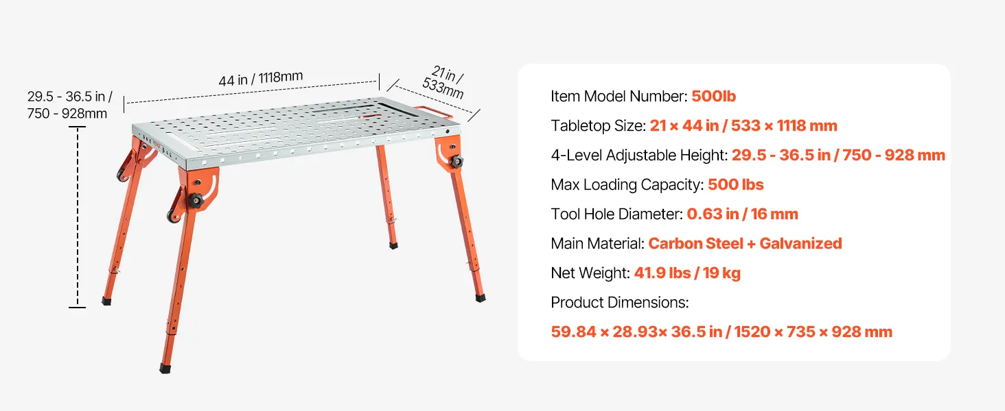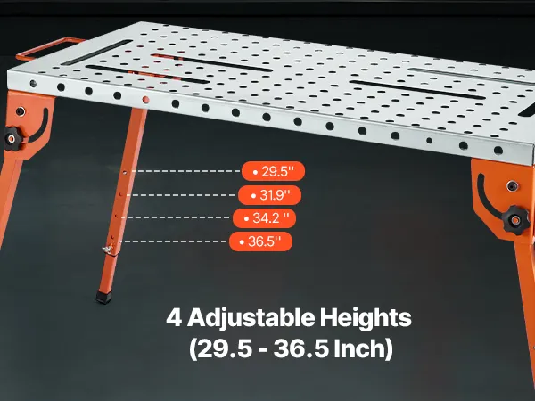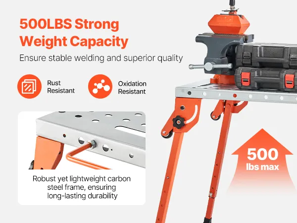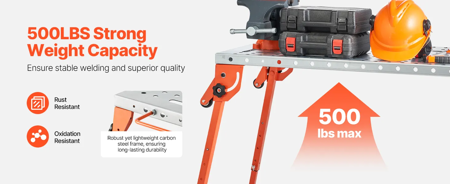 Hoge draagkracht: De lastafel is gemaakt van een stevig frame van koolstofstaal en kan tot 226 kg dragen. Het uiterst sterke frame biedt een uitstekend draagvermogen, bescherming tegen slijtage en roest en biedt stabiele ondersteuning voor uw lasprojecten.