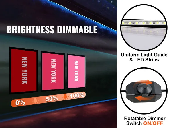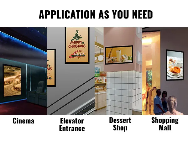 Versatile Display: From promotional graphics in retail stores to captivating images in movie theaters, elevators, dessert shops and shopping malls, the backlit picture frame effortlessly adapts to any location, providing a captivating experience for you and your audience.