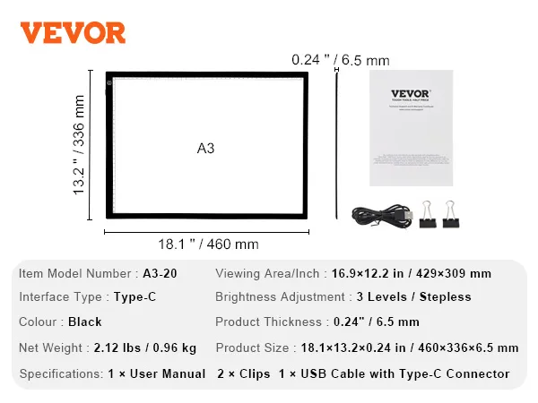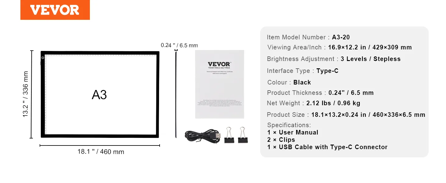 VEVOR A3 USB Powered Painting Light Box for Anywhere, Anytime