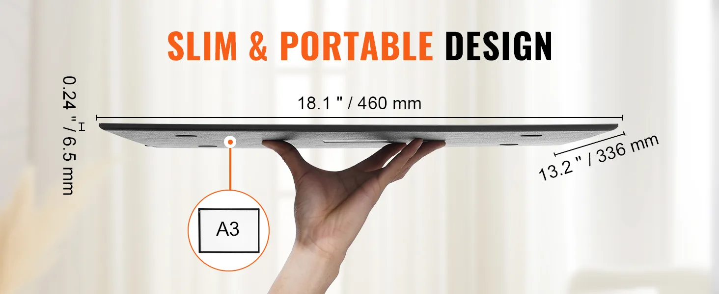 Ultra-Thin & Portable: With a thickness of just 0.24" and a weight of only 2.12 lbs, this ultra-slim and lightweight light board is designed for easy portability. It slips effortlessly into a backpack, laptop bag, or suitcase, making it convenient for use anywhere you go.