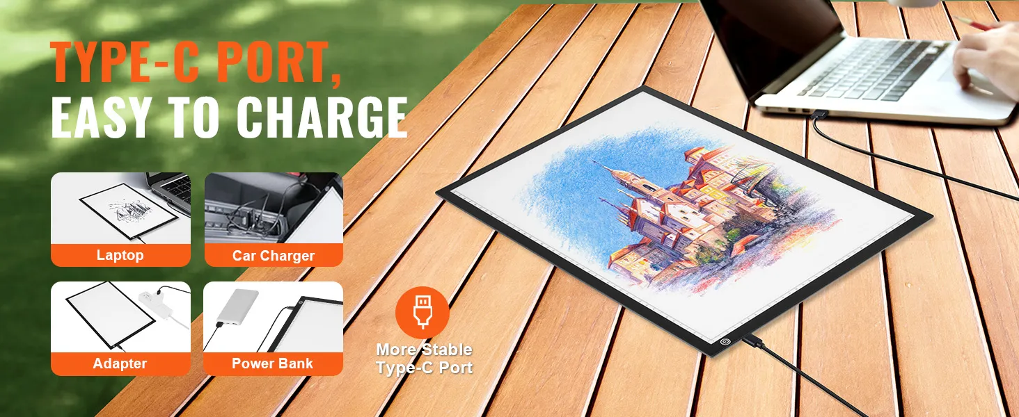 Featuring a Type-C port, this drawing light board ensures stable charging and usage. You can connect it to your laptop or a portable power bank, freeing you from the limitations of fixed power outlets.