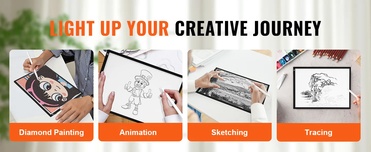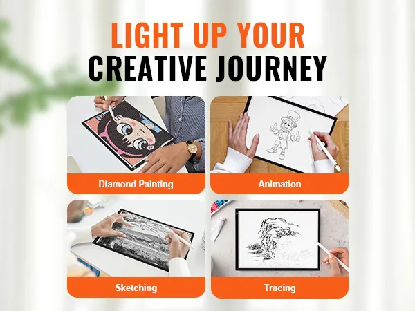 Our tracing light box serves multiple purposes, ideal for stencil printing, 2D animation, calligraphy, embossing, scrapbooking, tattoo transfers, sketching, drawing, sewing projects, and more.