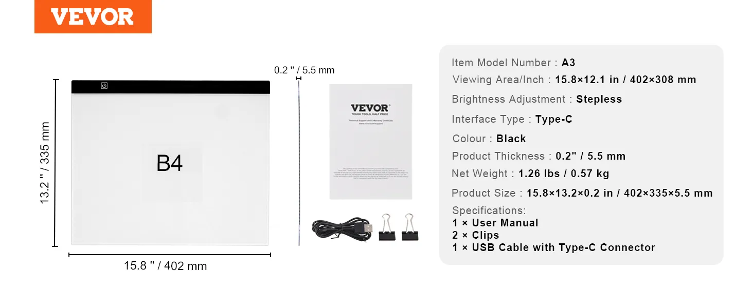 VEVOR B4 USB Powered Painting Light Box for Anywhere, Anytime