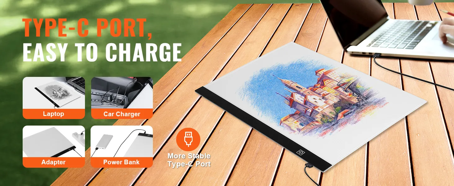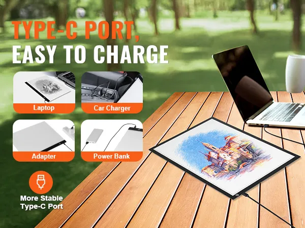 Featuring a Type-C port, this drawing light board ensures stable charging and usage. You can connect it to your laptop or a portable power bank, freeing you from the limitations of fixed power outlets.