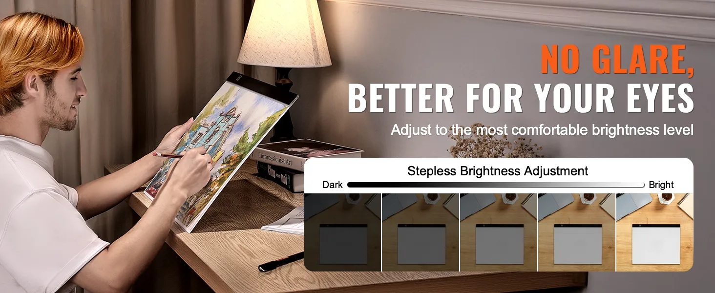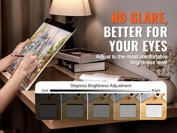 You can adjust the light box brightness to suit your environment. It provides shadow-free, glare-free illumination, with soft, even light that helps reduce eye strain for a more comfortable experience.