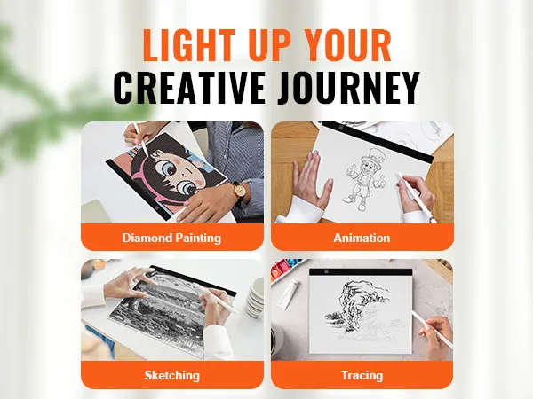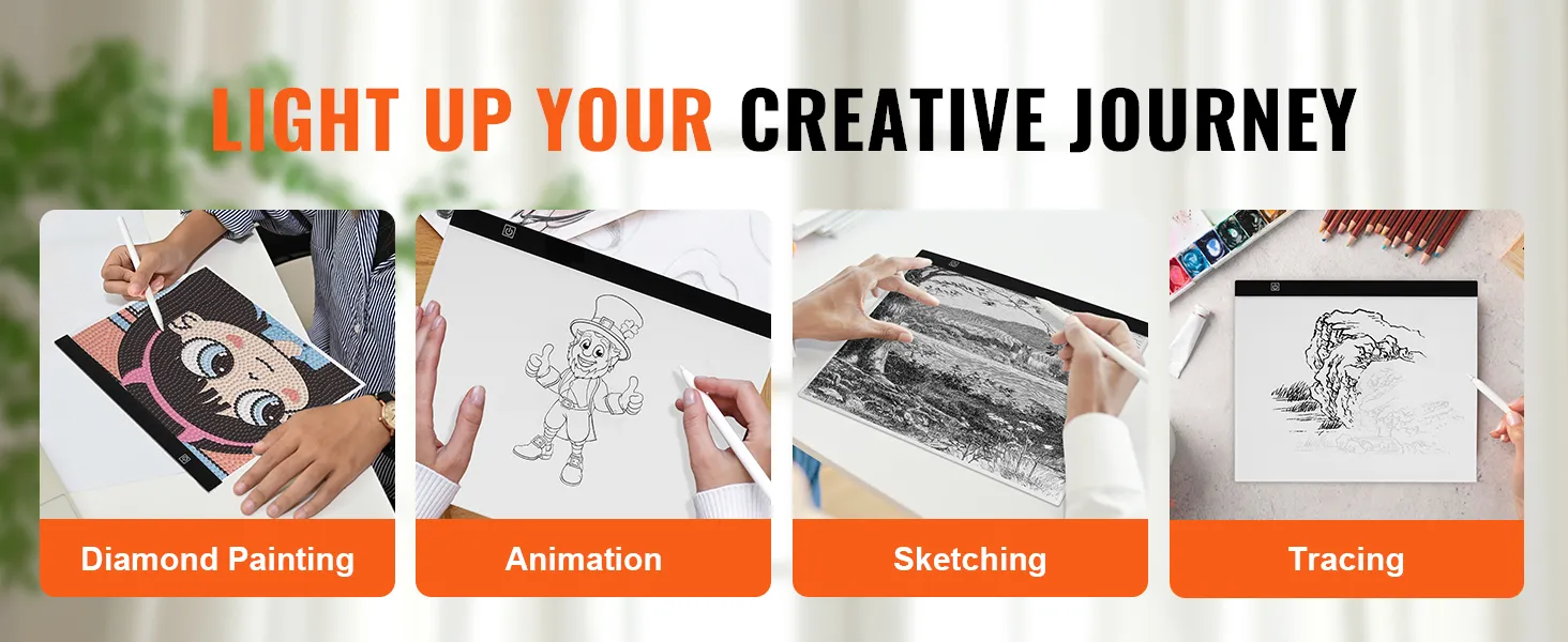 Our tracing light box serves multiple purposes, ideal for stencil printing, 4D animation, calligraphy, embossing, scrapbooking, tattoo transfers, sketching, drawing, sewing projects, and more.