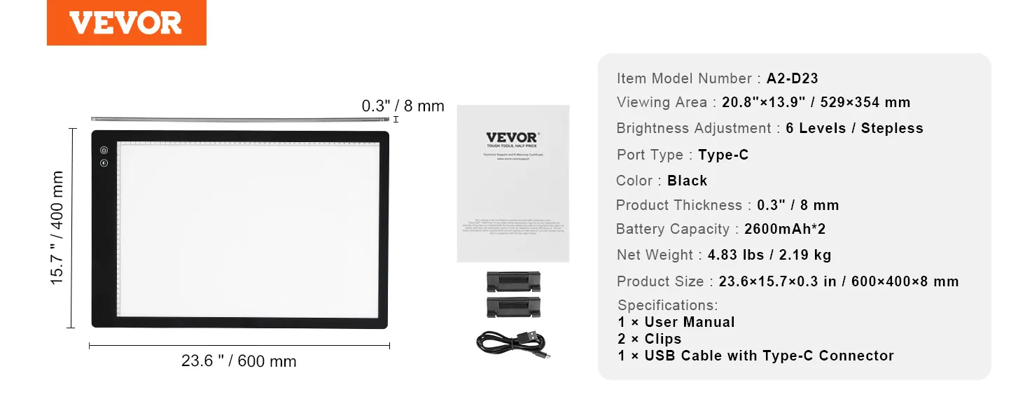 VEVOR A2 Rechargeable Painting Light Box for Anywhere, Anytime