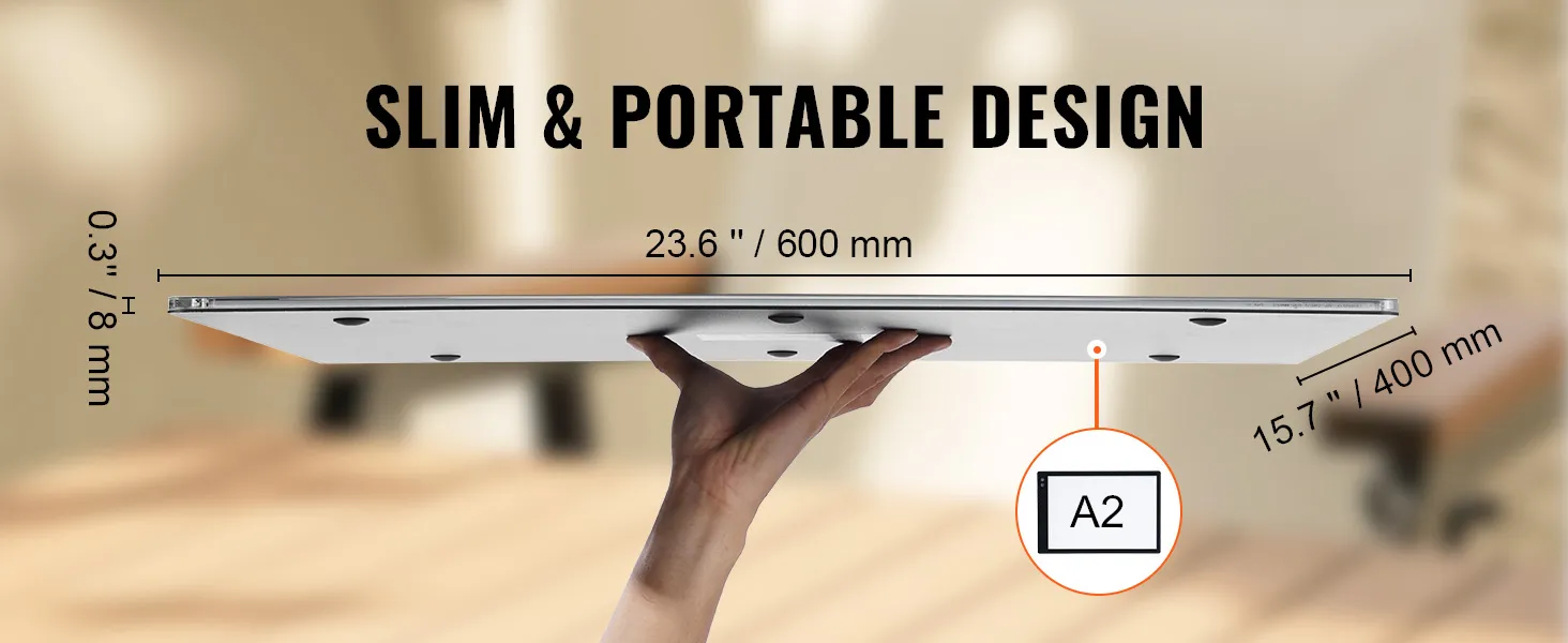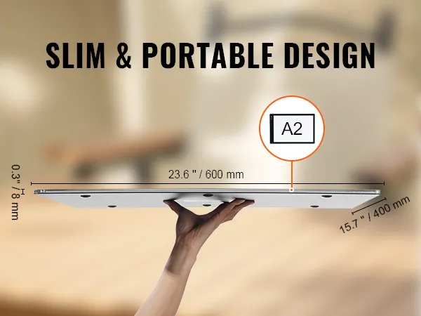 Ultra-Thin & Portable: With a thickness of just 0.3" and a weight of only 4.83 lbs, this ultra-slim and lightweight light board is designed for easy portability. It slips effortlessly into a backpack, laptop bag, or suitcase, making it convenient for use anywhere you go.
