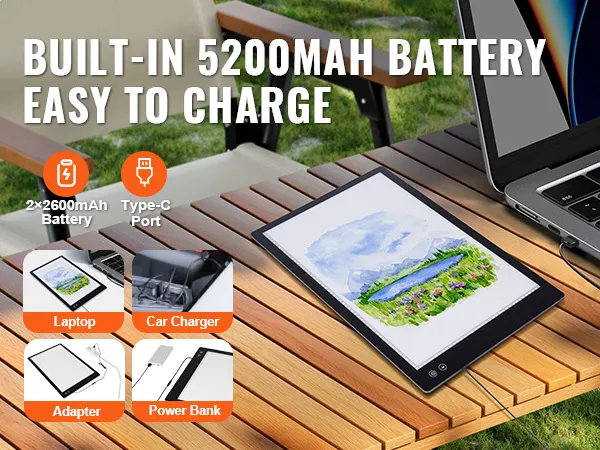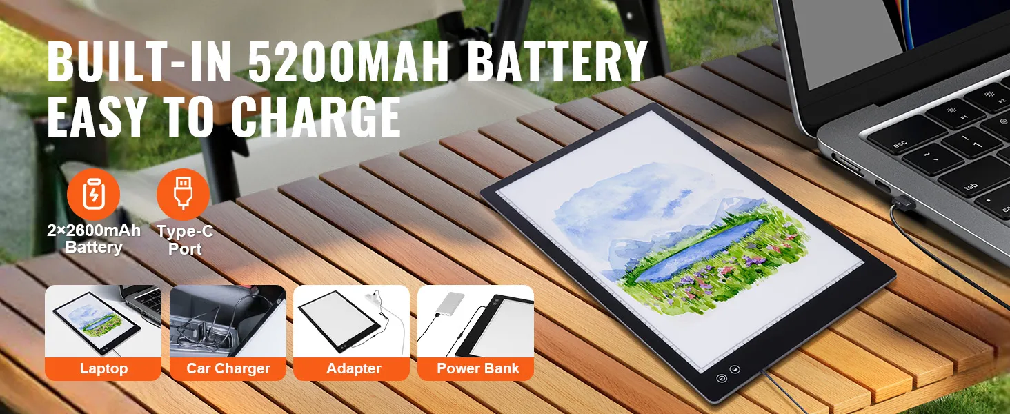 Featuring a Type-C port, this drawing light board ensures stable charging and usage. You can connect it to your laptop or a portable power bank, freeing you from the limitations of fixed power outlets.