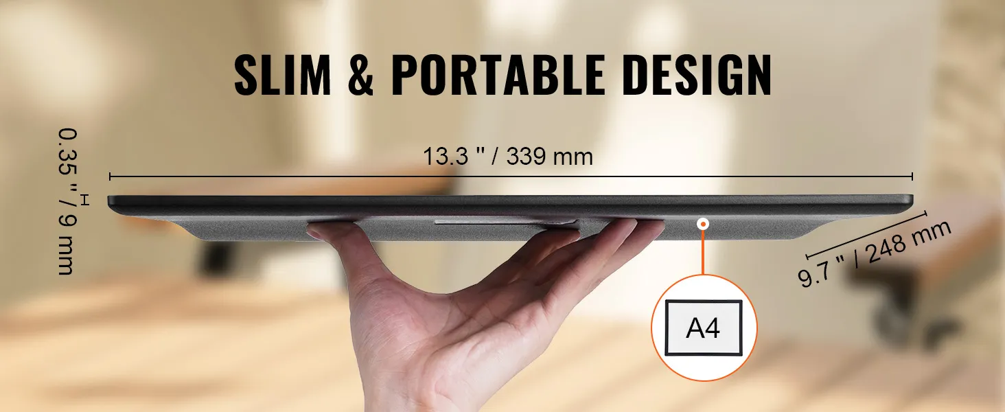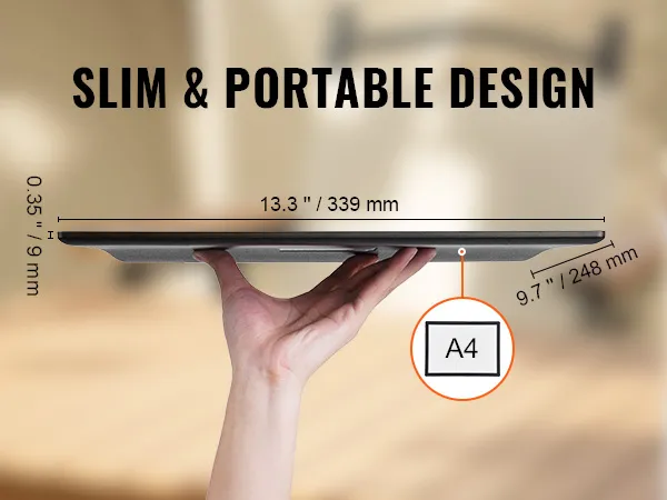 Ultradun en draagbaar: Dit ultradunne en lichte board is slechts 19 mm (0,35 inch) dik en weegt slechts 0,72 kg (1,59 lbs). Het is dus gemakkelijk mee te nemen. Hij past gemakkelijk in een rugzak, laptoptas of koffer en is daardoor overal gemakkelijk te gebruiken.