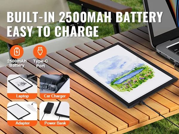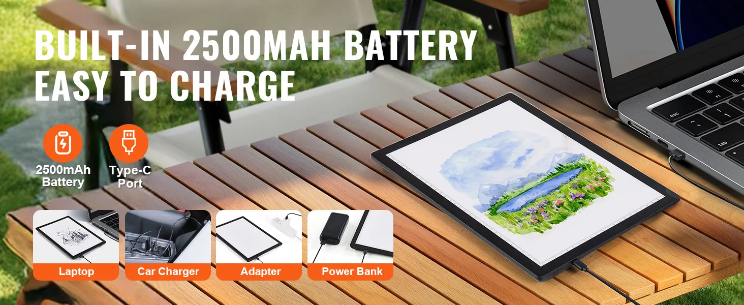Eenvoudig opladen: Dankzij de ingebouwde 2500mAh-batterij biedt dit product langdurig vermogen voor langdurige creatieve sessies en bent u onafhankelijk van stopcontacten. De Type-C-poort zorgt voor stabiel opladen en maakt het mogelijk om buitenshuis op te laden met een laptop of powerbank.