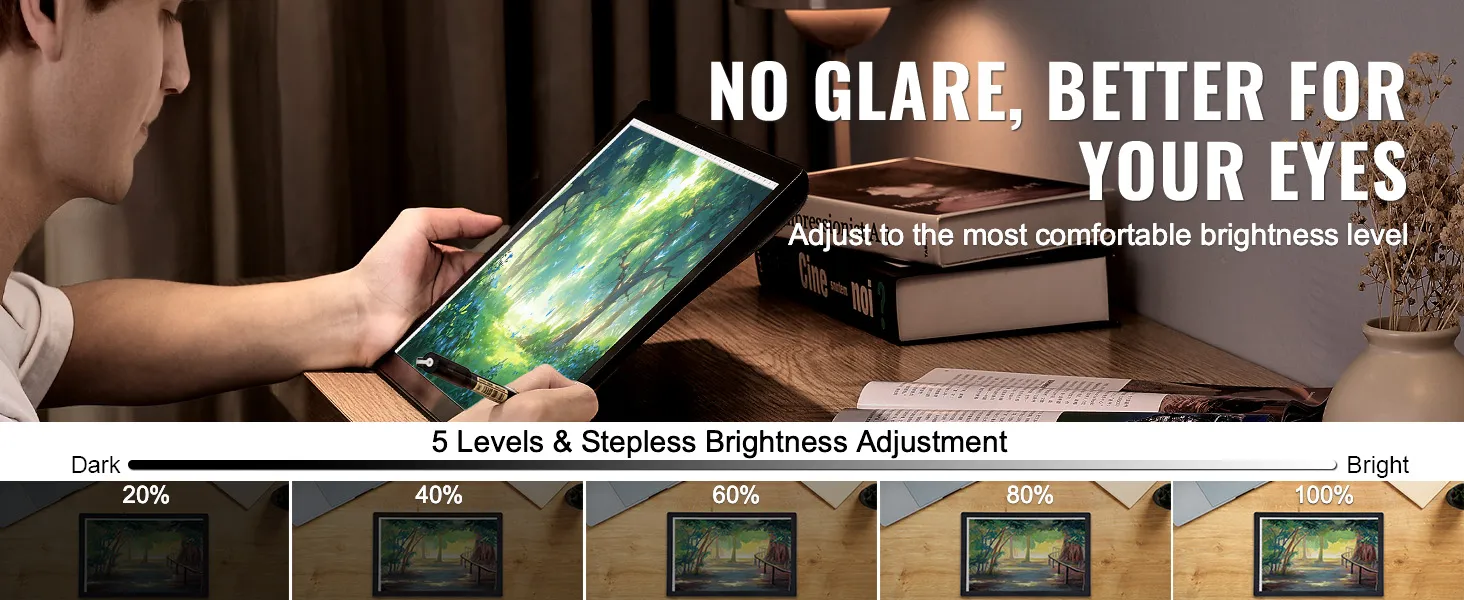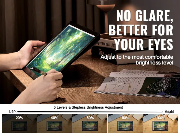 U kunt de helderheid van de lichtbak aanpassen aan uw omgeving. Het zorgt voor schaduw- en schitteringsvrije verlichting met zacht, gelijkmatig licht dat prettig is voor de ogen en het werken aangenamer maakt.