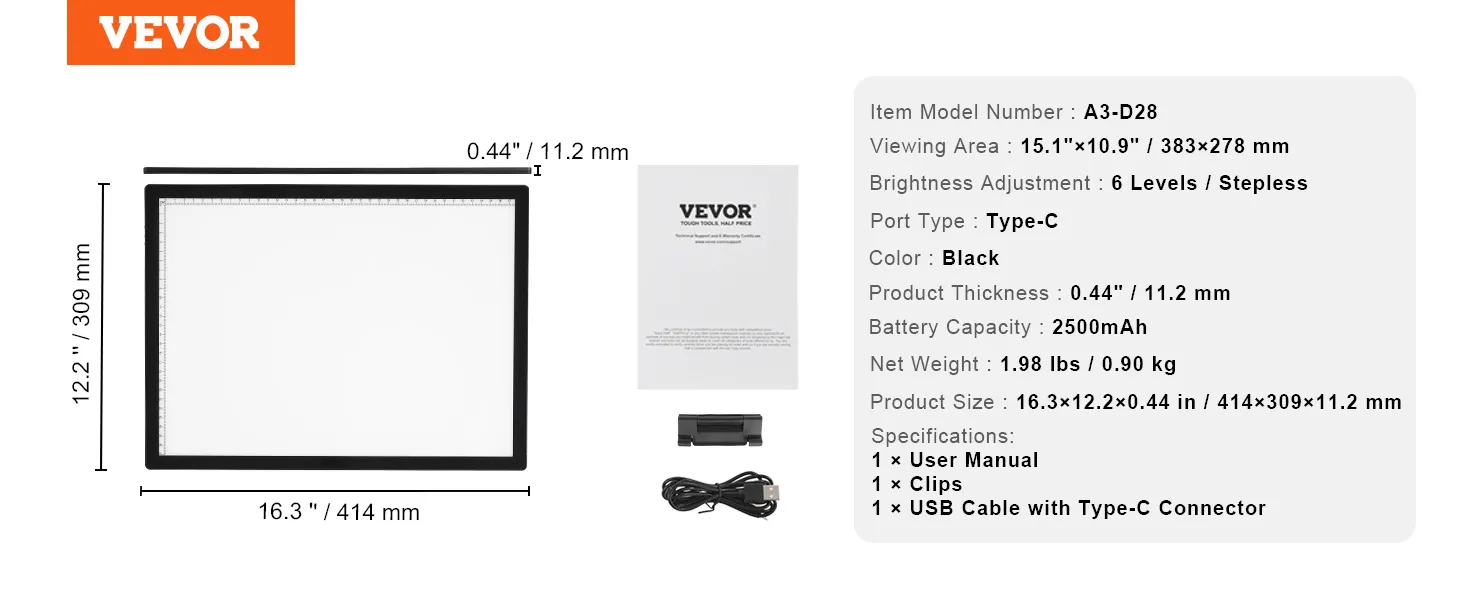 VEVOR A3 Rechargeable Painting Light Box for Anywhere, Anytime