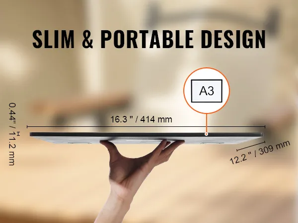 Ultra-Thin & Portable: With a thickness of just 0.44" and a weight of only 1.98 lbs, this ultra-slim and lightweight light board is designed for easy portability. It slips effortlessly into a backpack, laptop bag, or suitcase, making it convenient for use anywhere you go.