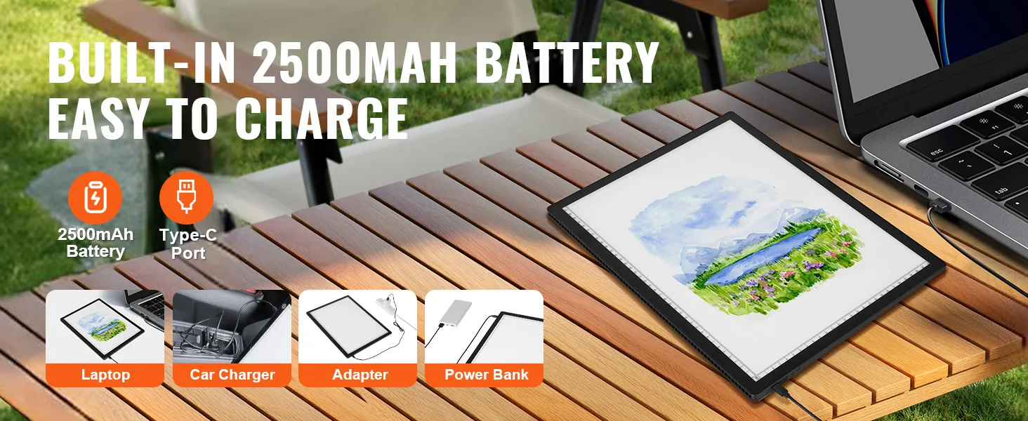 This light board features a rechargeable design, eliminating the need for frequent battery changes or power cords. You can start creating anytime, anywhere—whether sketching outdoors, working in a studio, or finding inspiration on the go. Our light box is ready to meet all your needs.