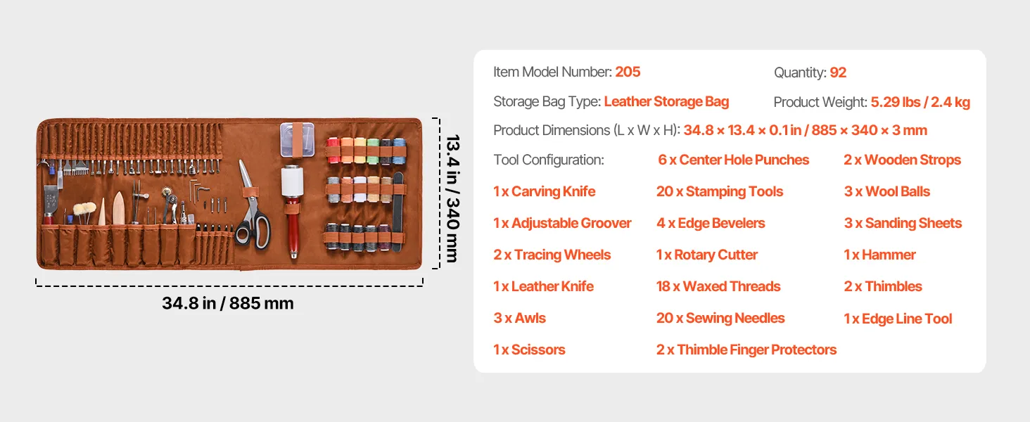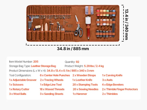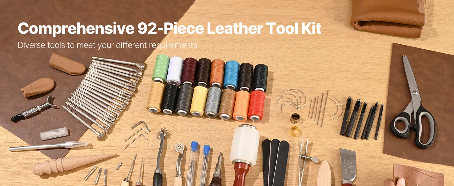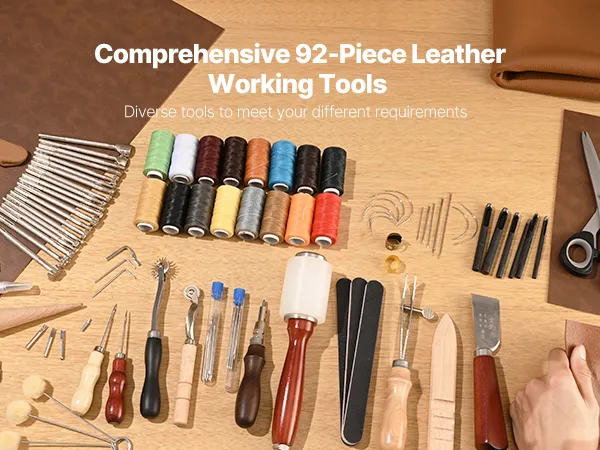 This 92-piece leather craft kit includes everything you need for punching, cutting, stitching, and carving. Made with high-quality materials for durability and ease of use. It also comes with a practical storage bag to keep your tools organized and easy to carry.