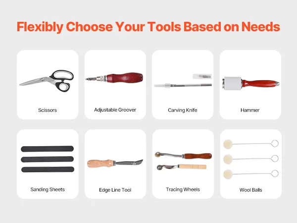 The leather tooling kit features an adjustable groover that lets you easily change the depth and width of the groove to suit different projects, with a simple replacement process for effortless use.