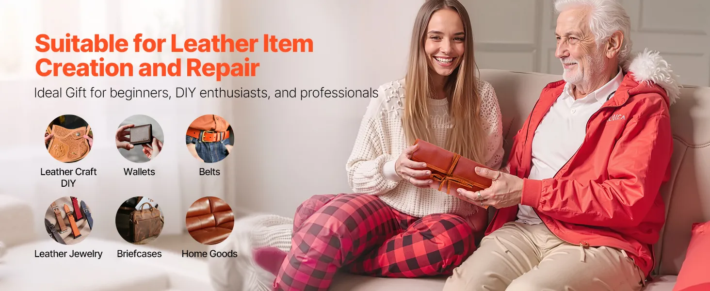 Leather Crafting: This leather working tools kit can be used on materials like leather, denim, fabric, and canvas, making it ideal for creating leather bags, wallets, belts, leather jewelry, furniture, shoes, and more.