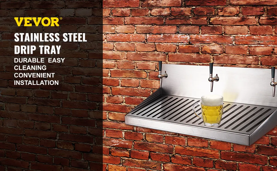 【3" HOOGE BACKSPLASH MET 2 GATEN】 - Met 3" hoge backsplash kan de lekbak voor kegerator u helpen de muur en andere oppervlakken te beschermen tegen vuile vloeistoffen. Dankzij de twee geboorde gaten kunt u deze eenvoudig en gemakkelijk installeren.