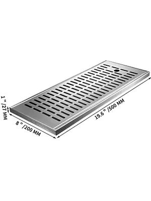 Total Size(L x W x H): 500x200x27 mm/19.6x8x1 in. This coffee countertop drip tray, with a reasonable size, is designed for any home or commercial use.