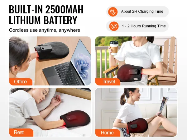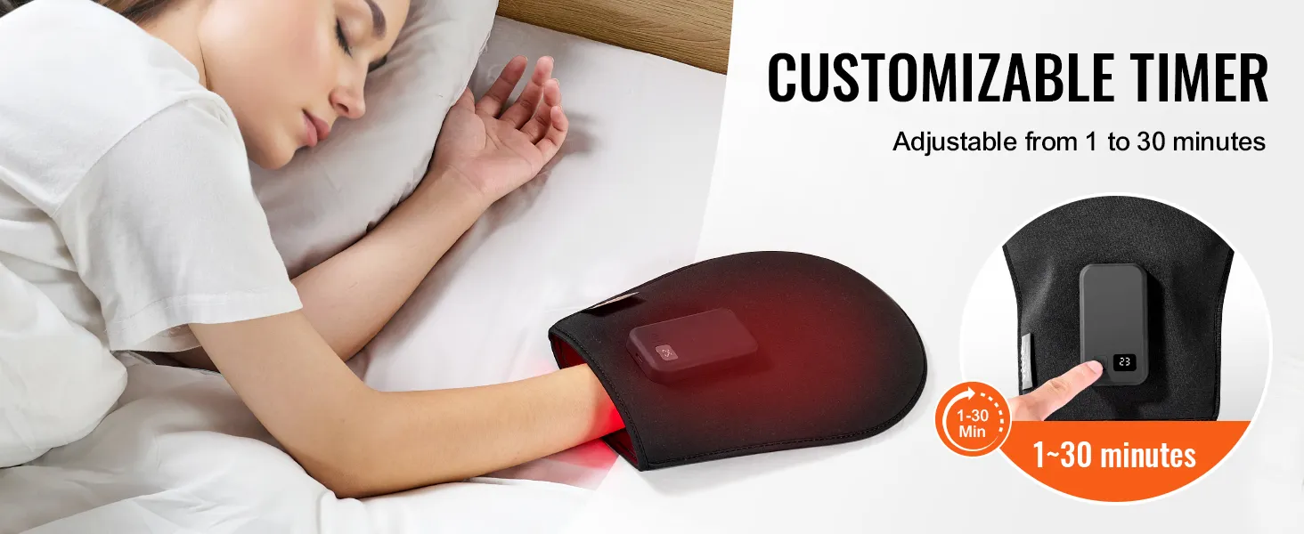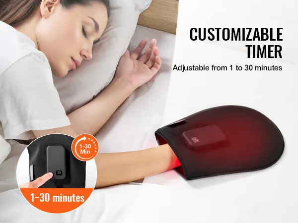 Dual Therapy Light Magic: Unleash the power of dual wavelengths (660 nm and 850 nm) of VEVOR red light therapy hand glove, penetrating deep into the skin to effectively relieve hand stiffness and pain. Combined with the 10Hz pulse and 3 timer settings (1-30 minutes), it provides faster recovery and deeper pain relief.