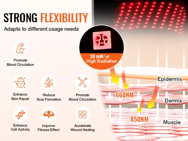 The red light therapy for waist utilizes 660nm + 850nm dual wavelengths, penetrating deep into the skin to effectively relieve muscle fatigue and soreness. Whether it's waist pain or shoulder stiffness from long hours of work, this device provides comprehensive and soothing relief.