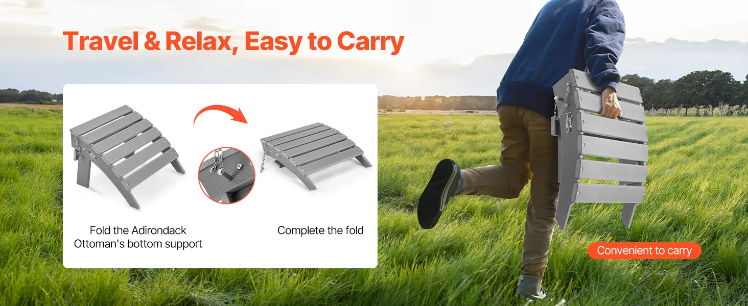 The design of our Adirondack foot rest allows for easy folding. Simply collapse the bottom support for quick storage, making it easy to carry whether you're heading to the beach or relaxing at the campsite.