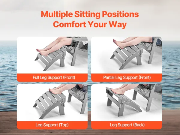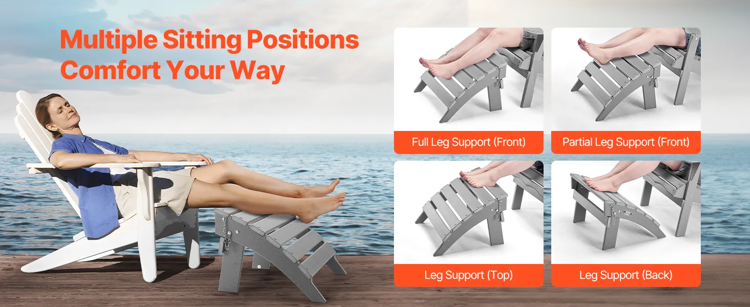 Our Adirondack foot stool provides various seating options, providing comfortable leg support. With adjustable settings, you can easily find a comfortable position to enjoy your outdoor relaxation.