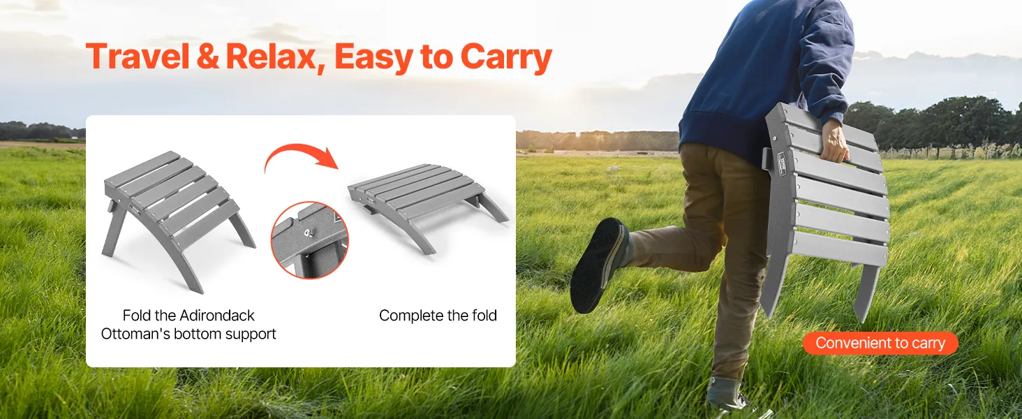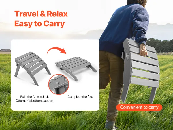 The design of our Adirondack foot rest allows for easy folding. Simply collapse the bottom support for quick storage, making it easy to carry whether you're heading to the beach or relaxing at the campsite.